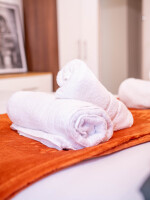 Modern Comfort: Step into our thoughtfully designed apartments and feel instantly at home. The spacious living area is furnished with contemporary decor, providing a stylish and comfortable space to relax and unwind. The well-equipped kitchen offers modern appliances, perfect for preparing meals or enjoying a cup of coffee in the morning. The bedrooms feature cozy beds and ample storage space, ensuring a restful night's sleep.